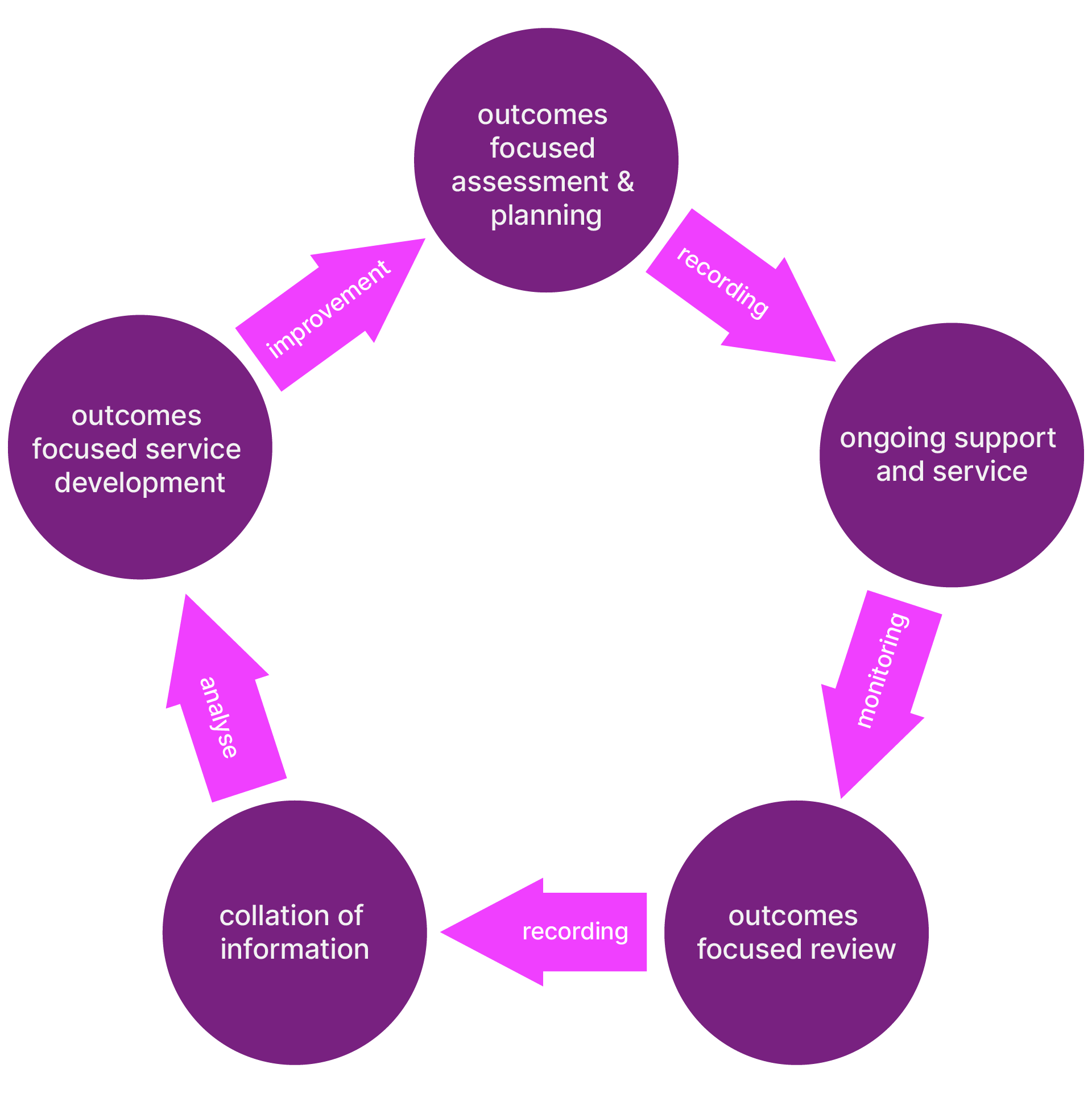 A personal outcomes approach to assessment, planning and review aims to shift engagement away from service-led approaches. This involves everyone working together to achieve the best possible impact on the individual’s life.